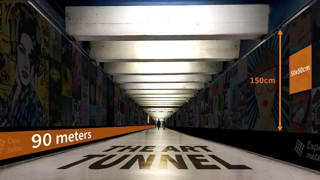 ↔️ Tras "The Art Train" en diciembre de 2022 en Miami Beach, Expometro lanza un nuevo concepto llamado "The Art Tunnel". Las obras se expondrán a ambos lados del pasillo principal de la estación Passeig de Gràcia que conecta las líneas L3 y L4. Cada lado tiene 90 metros de largo, totalizando así un cartel panorámico de 180 metros.